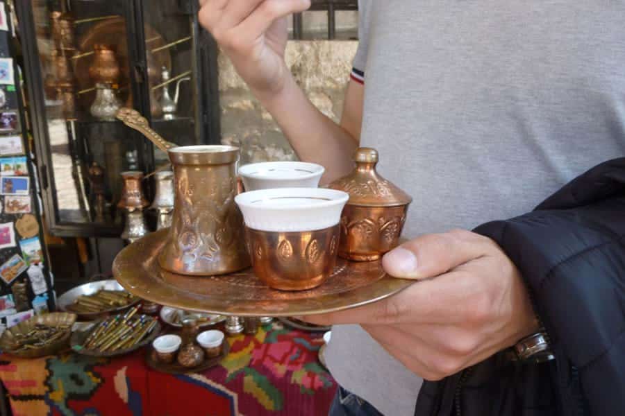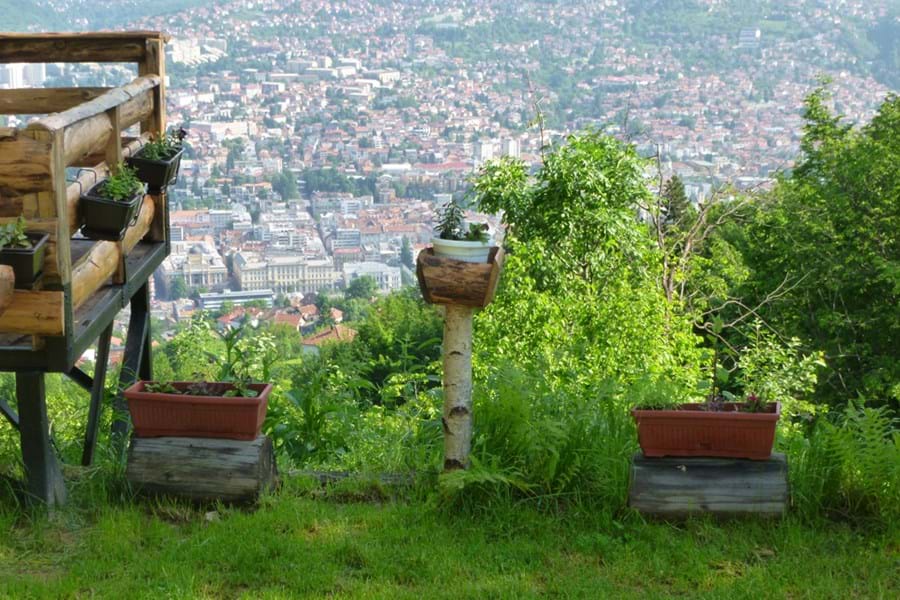 We rijden naar Autokamp Zlatište, hooggelegen met een waanzinnig uitzicht over Sarajevo. Als we de volgende dag met een taxi afzakken, blijkt het oude centrum een enorm contrast met de mistroostige buitenwijken. Sarajevo wordt omringd door de Dinarische Alpen, vandaar dat de stad tijdens oorlogen vaak onder vuur lag, zoals ook jarenlang tijdens de verwoestende Balkanoorlog van de jaren 90. Het is een indrukwekkende mengelmoes van culturele invloeden, beschavingen en religies. De oude bazaar – Baščaršija – wordt gedomineerd door minaretten, kerktorens, fonteinen, zilverwerk- en tapijtverkopers, koperslagers en duiven. Het is aangenaam slenteren langs winkeltjes en de diversiteit aan architectuur.