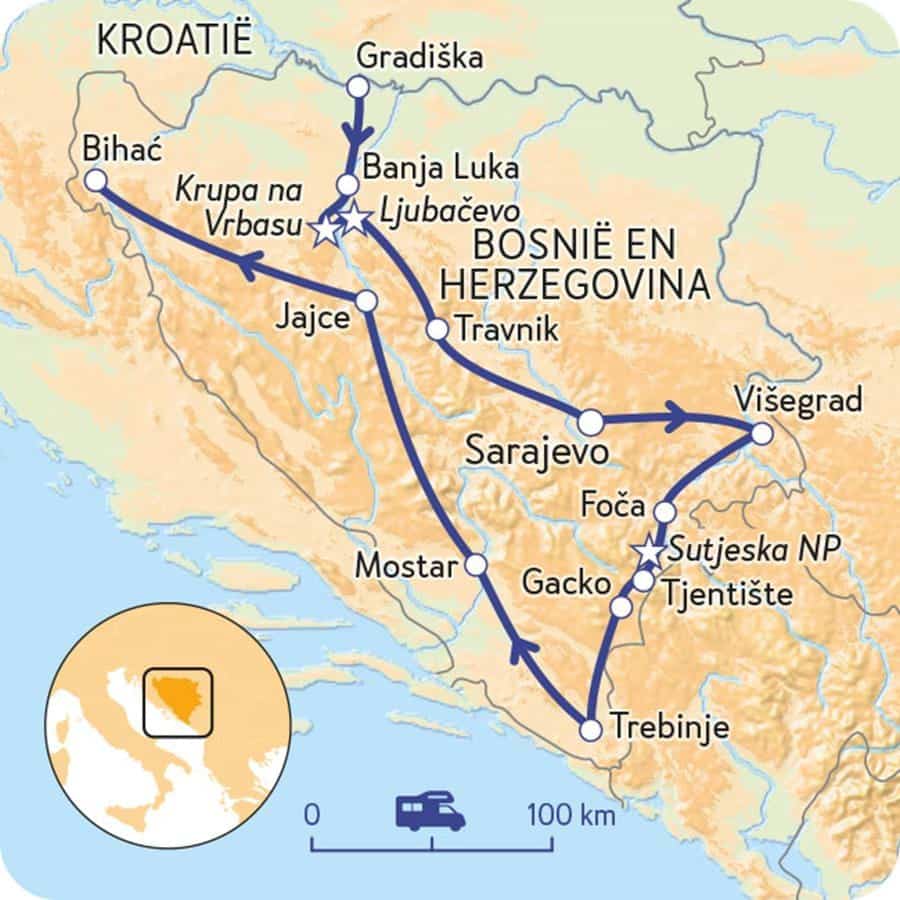 Benieuwd rijden we na 1.800 kilometer bij Bosanska Gradiška aan de noordgrens het land in. De neus wenden we grofweg naar het zuiden, naar Trebinje, dan rijden we naar het noordwesten en bij Bihać er weer uit. Bij binnenkomst