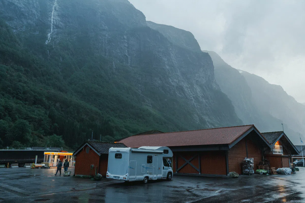 Overstromingen kunnen razendsnel opkomen. Vermijd daarom plaatsen direct naast een rivier, beek of in laaggelegen gebieden. Kijk ook naar de beschutting. Terwijl een open veld ideaal lijkt voor het uitzicht, kan het bij hevige wind of hagel een risico vormen. Zoek in plaats daarvan naar natuurlijke windbeschutting als heuvels, bomen of struiken, maar zorg ervoor dat je camper niet direct onder een boom staat in verband met vallende takken. Parkeer bij voorkeur zo dat je makkelijk vooruit weg kunt rijden.