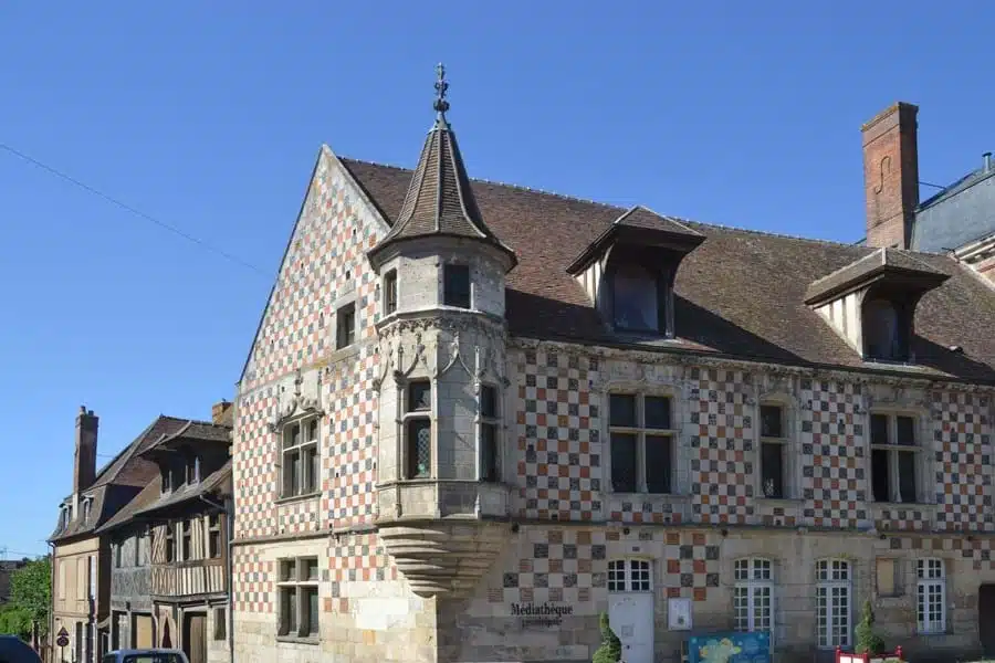 We krijgen ze allemaal te zien als we de wandelroute volgen die we bij het Office de Tourisme naast de Église Sainte-Madeleine hebben gekregen. De imposante klokkentoren van 56 meter hoog, een juweeltje van laatgotische stijl, vindt steun tegen de beuk van de kerk. De gemeentelijke mediatheek Jérôme-Carcopino is een monument met prachtige hoektorens. De façade is een soort dambord opgebouwd uit grison, ijzerhoudende zandsteen en vuursteen; de constructie dateert uit de vijftiende eeuw.