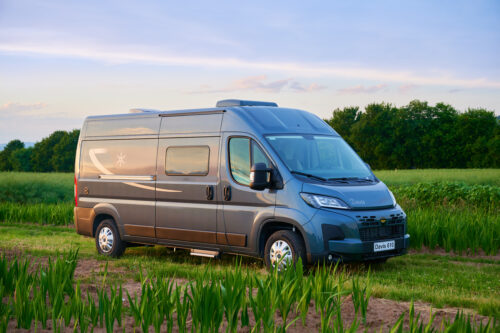 Wie met vier personen in de Karmann-Mobil Davis 610 LS wil reizen en overnachten, kan kiezen voor het optionele hefdak, met twee extra slaapplaatsen. Basisvoertuig van deze buscamper is de nieuwe Fiat Ducato, die standaard is uitgerust met een 140 pk-motor.