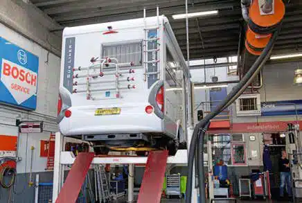 Ook van onder wordt de camper grondig geïnspecteerd.