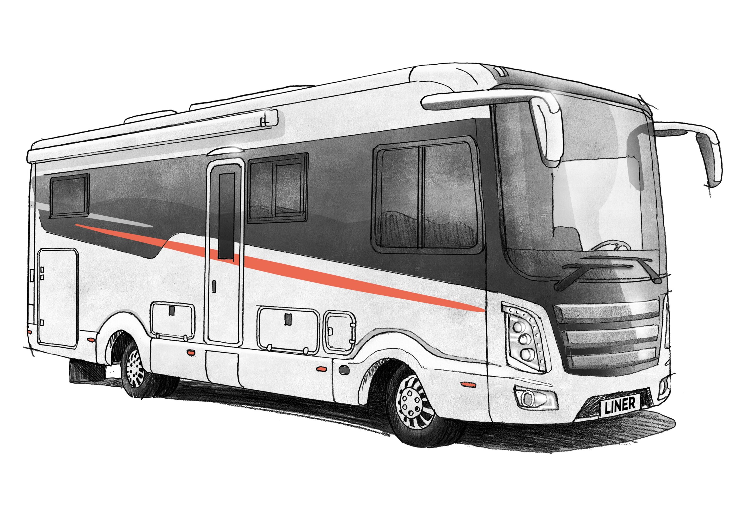 Liners zijn groot, luxueus en kosten zo’n 200.000 tot 350.000 euro. Ze worden gebouwd op het chassis van vrachtwagens en hebben ook het formaat en gewicht ervan, maar meer het uiterlijk van touringcars. Ze hebben een lengte van zo’n acht tot twaalf meter. Hierdoor is er royaal ruimte om te leven; een grote camperkeuken, een ruime slaap- en badkamer en een royale zithoek bieden veel comfort.