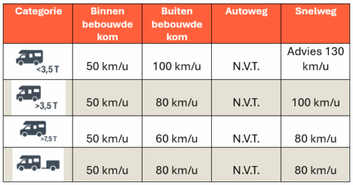 • Het bord ‘minimum afstand houden voor vrachtwagens’ geldt ook voor campers zwaarder dan 3.500 kg.