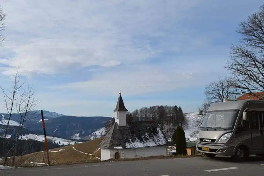 Vet genieten in het Zwarte Woud - Camper bij kerk