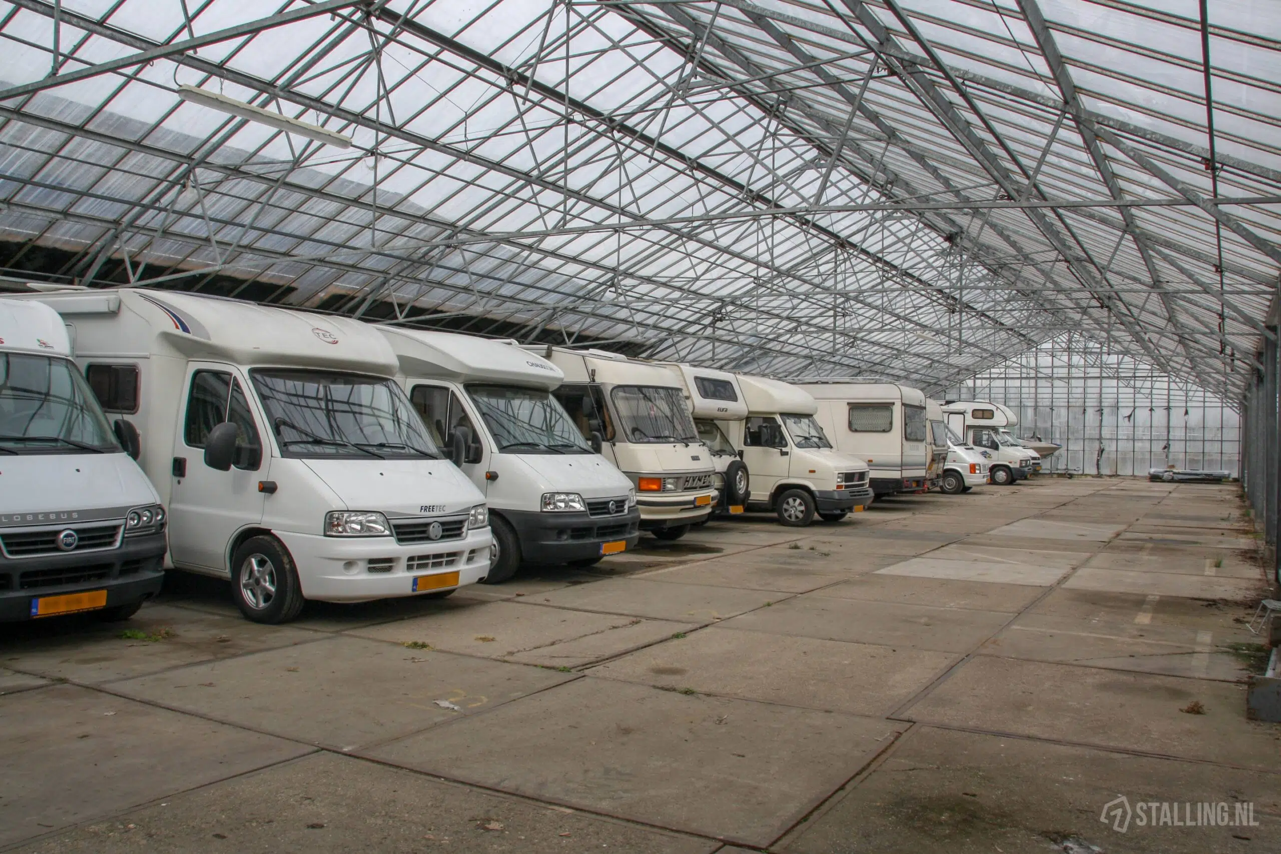 Camperstalling Nieuw Vennep van de VZ Groep biedt ruime plekken aan voor campers. Heb je een groot kampeervoertuig? Dan zit je hier perfect! Alle campers worden binnen in de kas gestald op een verharde ondergrond. Deze ondergrond zorgt ervoor dat er geen vocht vanuit de ondergrond kan optrekken. Ook is het dak van de kas gekrijt, zodat het directe zonlicht wordt tegengehouden.